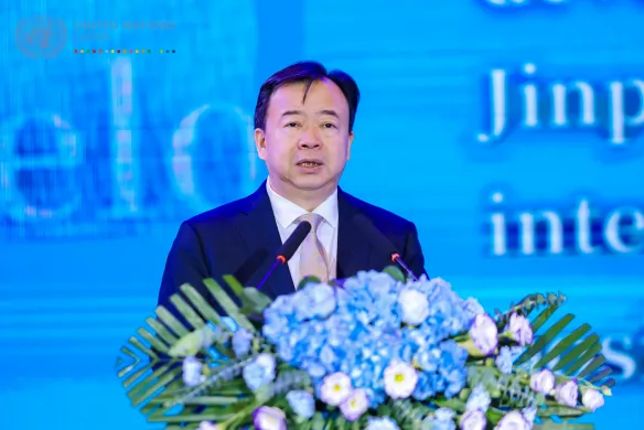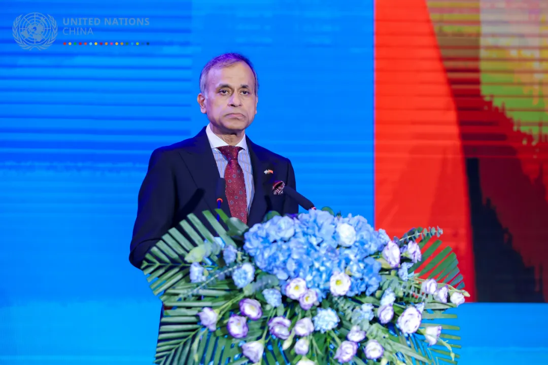 联合国驻华系统协调员常启德阁下在发言中指出,“我们已经处在一个严峻的关键时刻,有超过1.2亿人被迫流离失所。他们之所以流离失所,是因为贫困,因为不稳定,因为冲突。这就是为什么联合国秘书长决定召集世界各国领导人参与未来峰会。未来峰会的目的是让我们复苏,让我们重新调整,让我们振兴多边主义,这至关重要。中国是少数几个真正以实际行动加速可持续发展目标实现的国家之一,我们要思考如何进一步加强和振兴多边主义,如何加大发展投融资。我们计划汇集大约三百到四百位中国企业的负责人。看看他们有什么想法,以加速可持续发展目标,能有什么样的创新和技术,能带来怎样的智慧,来增强我们实现可持续发展目标的能力。”